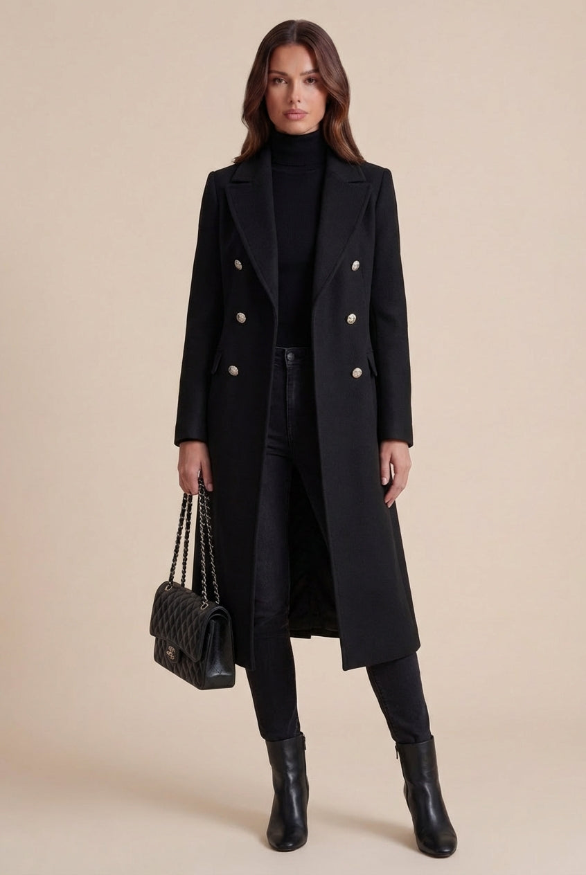 Daisy Trenchcoat Met Gouden Knopen | Zwart