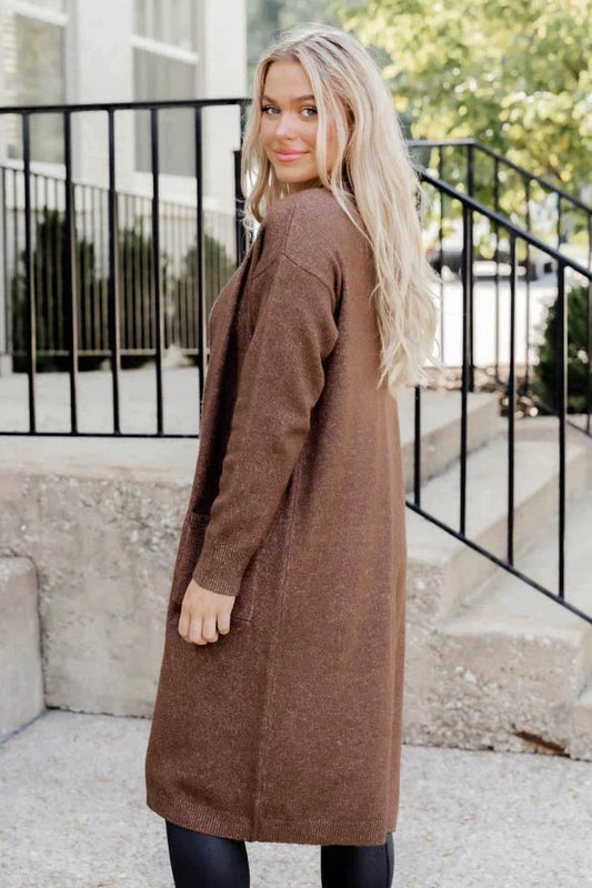 Dames Lang Vest – Gebreid – Open Voorzijde – Relaxte Pasvorm – Met Zakken