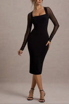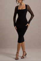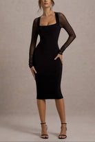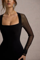 SIENNA ZWARTE BODYCON JURK MET MESH MOUWEN