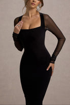 Deze zwarte jurk laat je stralen, deze is prachtig om te dragen tijdens een diner, date of avondje uit. Door zijn square halslijn die zorgt voor een subtiele decolleté in combinatie met de lange mesh mouwen, zal jij de eyecandy van de avond zijn! Hij zit ook nog eens super fijn door zijn stretch en vormt zich helemaal naar jouw lichaam, zodat het vrouwelijke silhouet wordt benadrukt.
