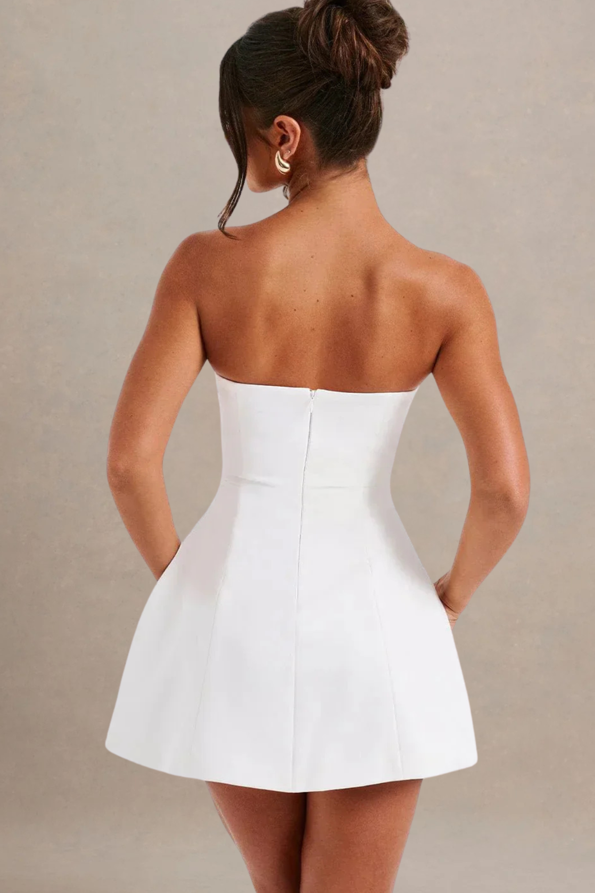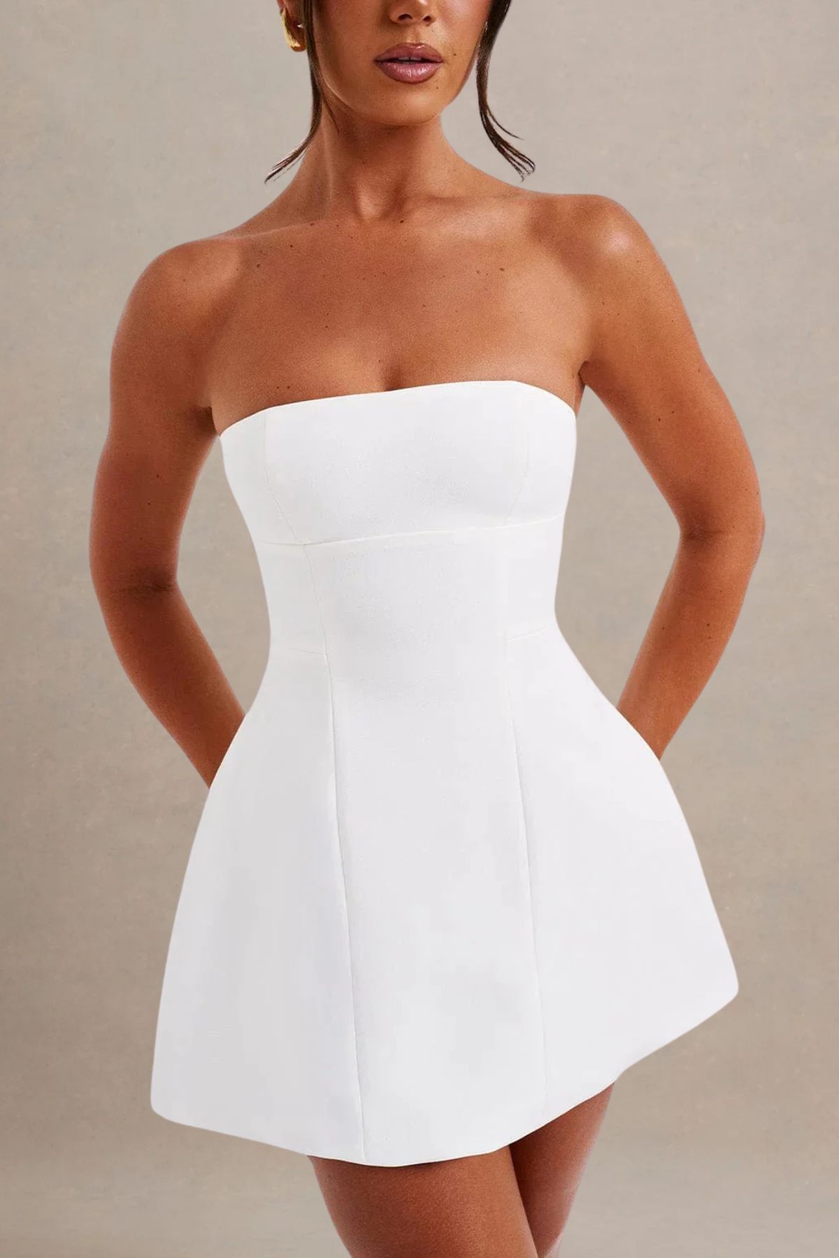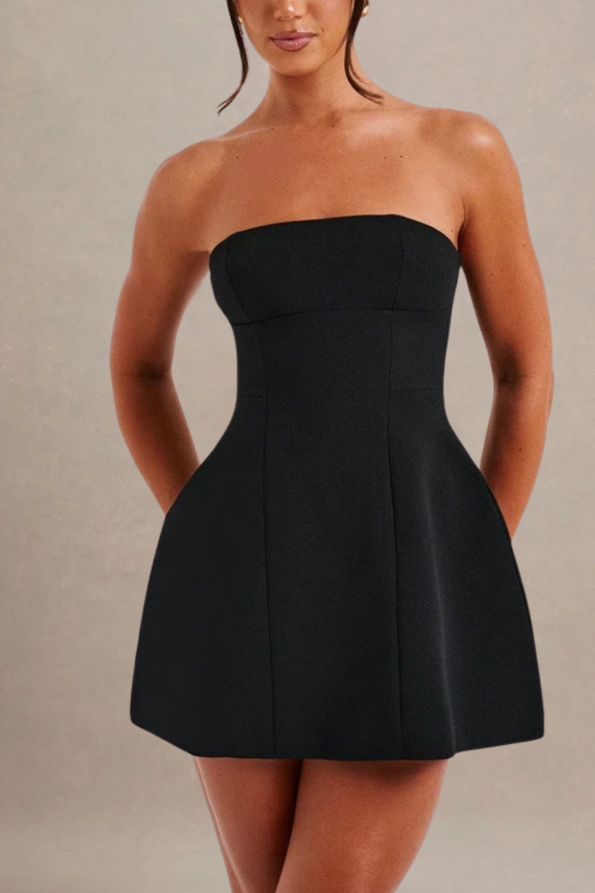 Straal eenvoud en elegantie uit met deze strapless mini skaterjurk – een tijdloos ontwerp dat jouw vrouwelijke silhouet prachtig benadrukt. De strapless bovenkant legt de focus op je schouders en halslijn, terwijl het skatermodel je taille accentueert en zorgt voor een speelse, flatterende look. Perfect om te dragen naar een feestje, avondje uit of een zomerse gelegenheid waar je moeiteloos stijlvol wilt verschijnen.
