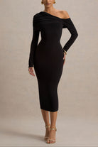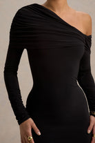 Deze zwarte jurk laat je stralen, deze is prachtig om te dragen tijdens een diner, date of avondje uit. Door zijn asymmetrische halslijn zorgt de jurk voor een elegante look in combinatie met het bodycon design, zal jij de eyecandy van de avond zijn! Hij zit ook nog eens super fijn door zijn stretch en vormt zich helemaal naar jouw lichaam, zodat het vrouwelijke silhouet wordt benadrukt.