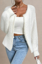 ZACHT FLUFFY VESTJE MET PARELDETAIL | WIT