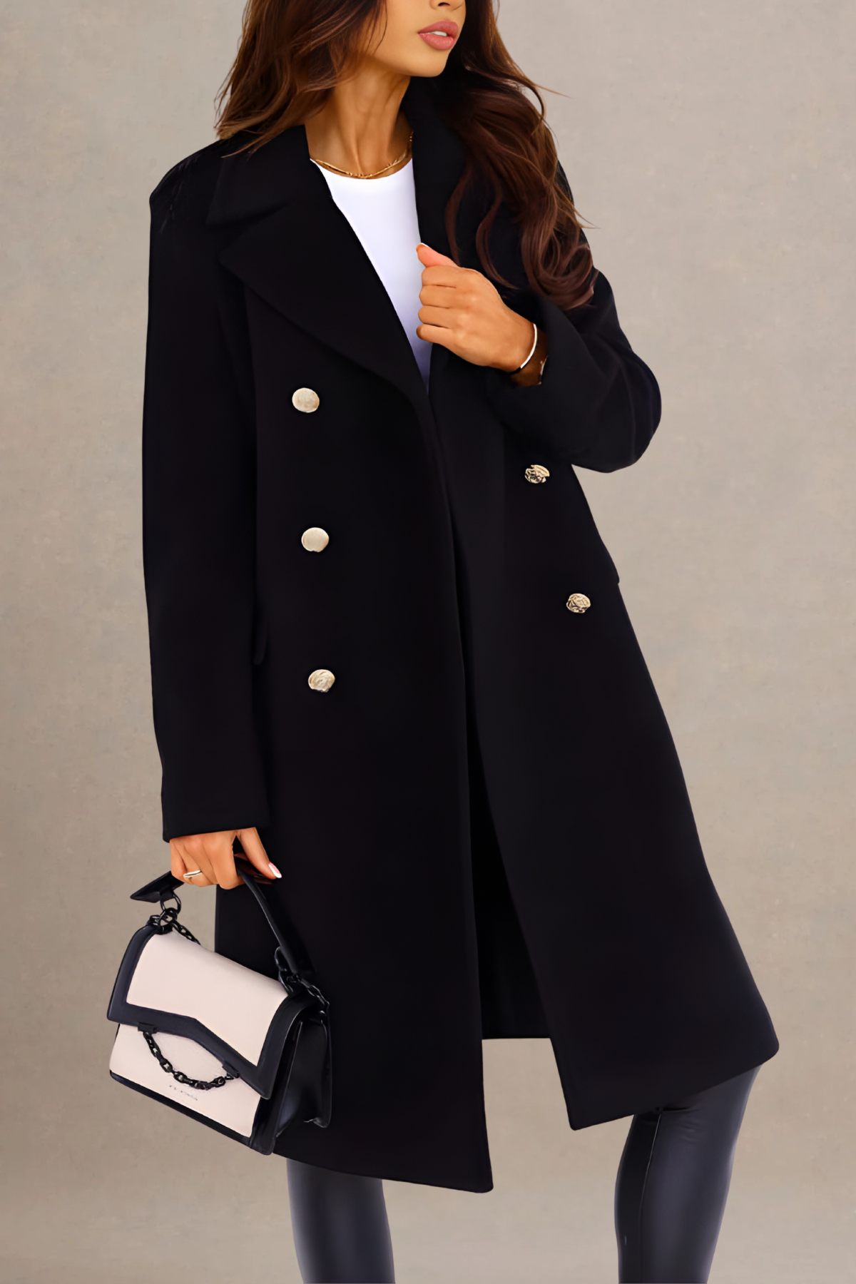 Ervaar tijdloze elegantie met deze prachtige dames trenchcoat. Vervaardigd uit hoogwaardige wol, biedt deze gedetailleerde jas een vleiende pasvorm voor ultieme stijl en warmte. Door zijn gouden knopen en klassieke kraag straalt hij elegantie uit, te dragen voor iedere gelegenheid.