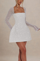 FENNE SEQUIN MINI GLITTERJURK | WIT